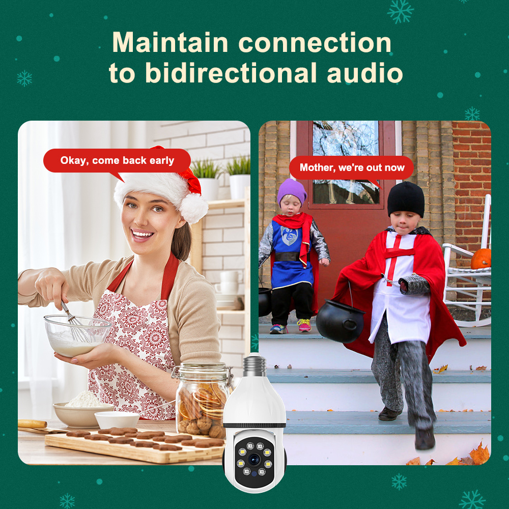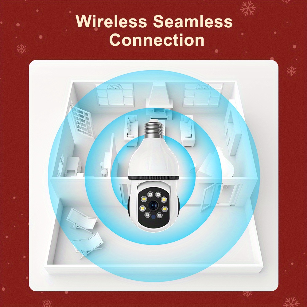 1080P HD WJG E27 Light Bulb Camera – Dual Band WiFi (2.4G+5G) Auto-Tracking, Color Night Vision, AI Motion Alerts for Home Security & Pet Monitoring with Cloud/Card Storage Support