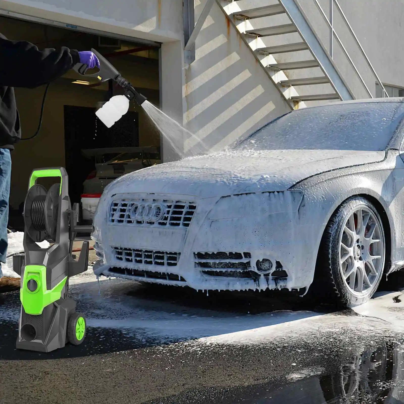 ✅ Powerful high-pressure cleaning machine: The high-pressure cleaning machine can provide a water flow rate of up to 450 liters/hour and 150 bar, which is sufficient to remove deep dirt, cement, road surfaces, swimming pools, outdoor furniture, cars, trucks, etc.