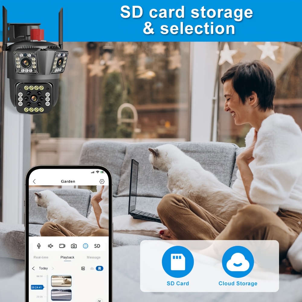 1pc 12MP Ultra HD WiFi Outdoor Camera, 3-Lens PTZ Security Monitor with 10X Zoom, 355° Rotatable Tilt, Color Night Vision, AI Motion Detection, Two-Way Audio, Wall Mount, Non-Waterproof, European Standard Plug, 110V-240V, App Control, Audio Alerts, Withou