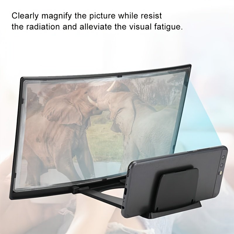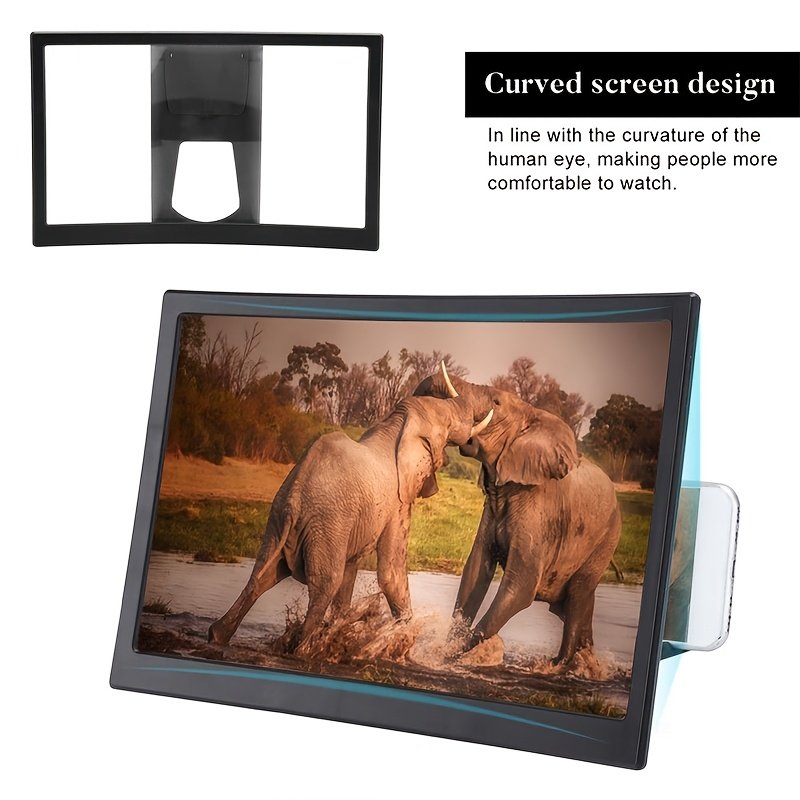 1pc Curved Screen Phone Magnifier, 12-inch HD 3D Mobile Screen Magnifier with Foldable Stand, Advanced ABS Waterproof Screen Enlarger for Smartphones
