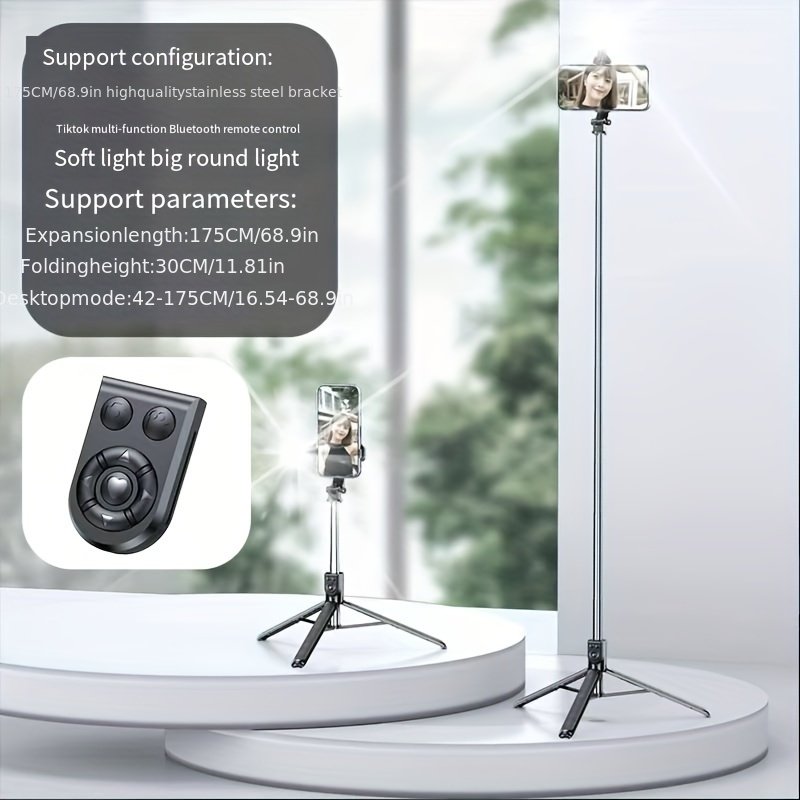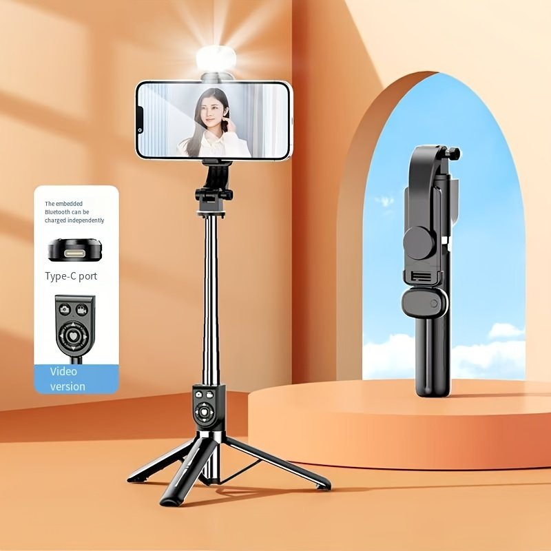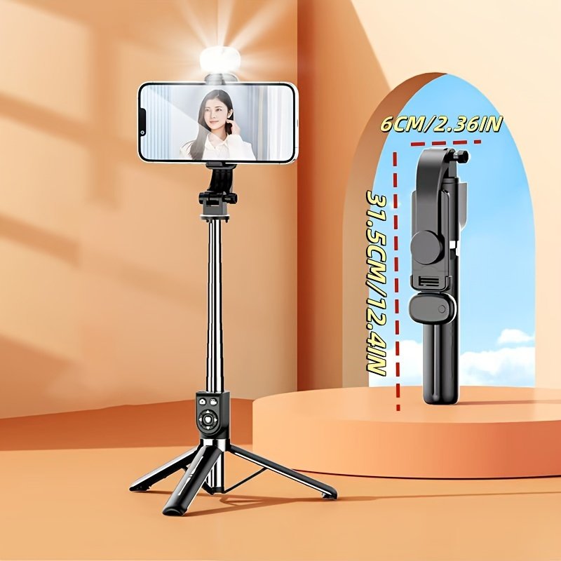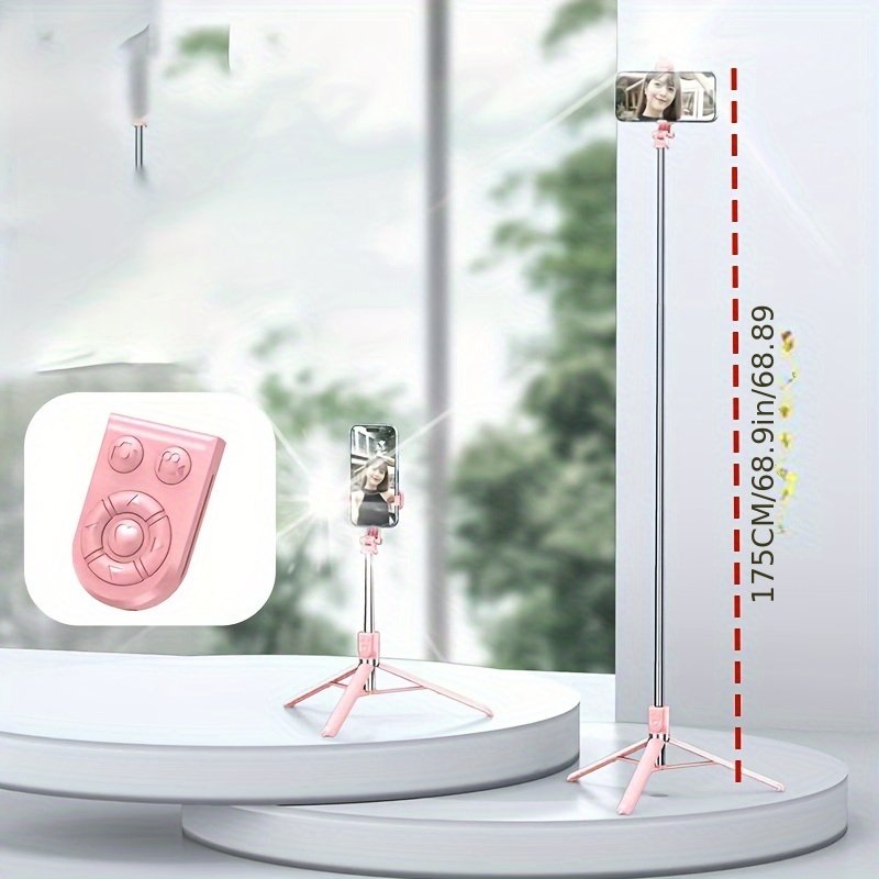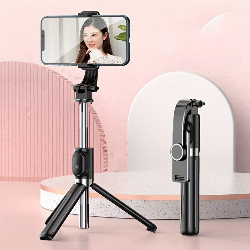 1pc Stainless Steel Adjustable Selfie Stick, Wireless Tripod Stand with Phone Holder, Extendable Telescopic Smartphone Mount for Live Streaming, Portable and Durable