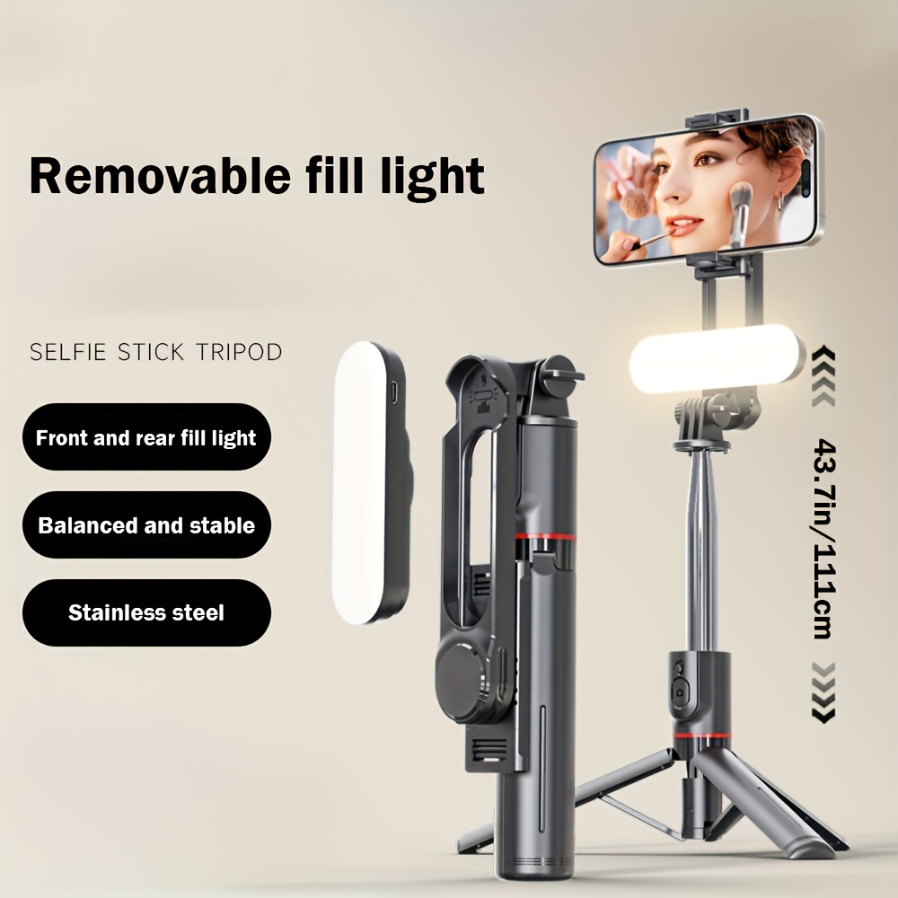 1pc Stainless Steel Selfie Stick with Wireless Remote Fill Light, Battery Powered, ≤36V, Multi-functional Handheld Travel Stand for iPhone/Android, Outdoor Live Photo Shooting, Ideal Gift
