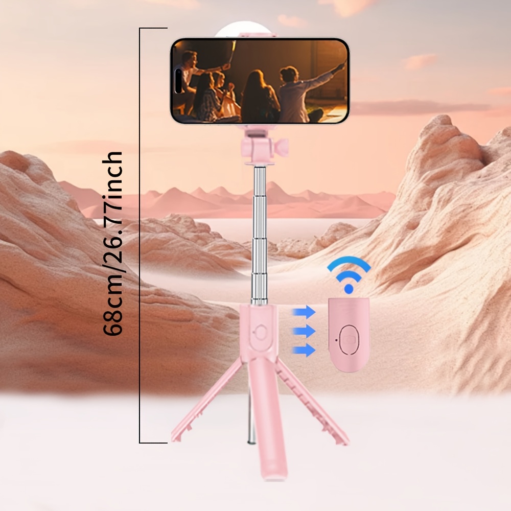 1pc Wireless Selfie Stick Tripod with Remote Control, Extendable Smartphone Holder, ABS Plastic, Battery Operated, Non-Rechargeable, for Live Streaming & Photography, Compatible with iPhone & Samsung