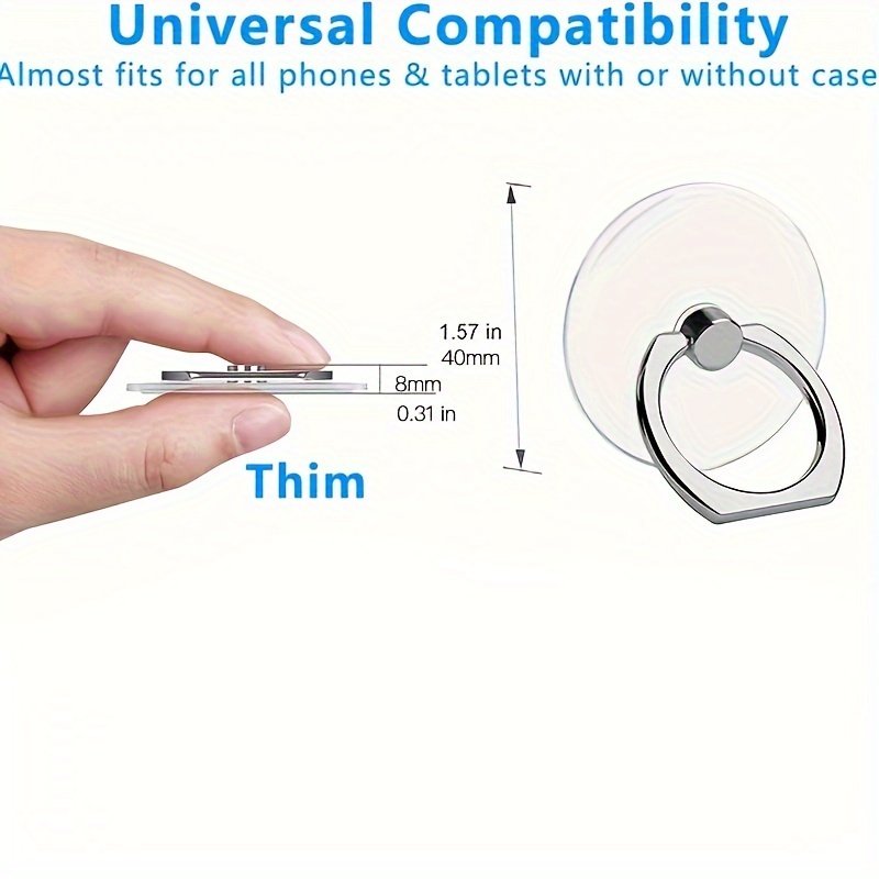 2 Packs Transparent Mobile Phone Ring Holder 360° Rotation Mobile Phone Ring Holder Mobile Phone Finger Holder Handheld Phone Grip For Phone Case (Round)