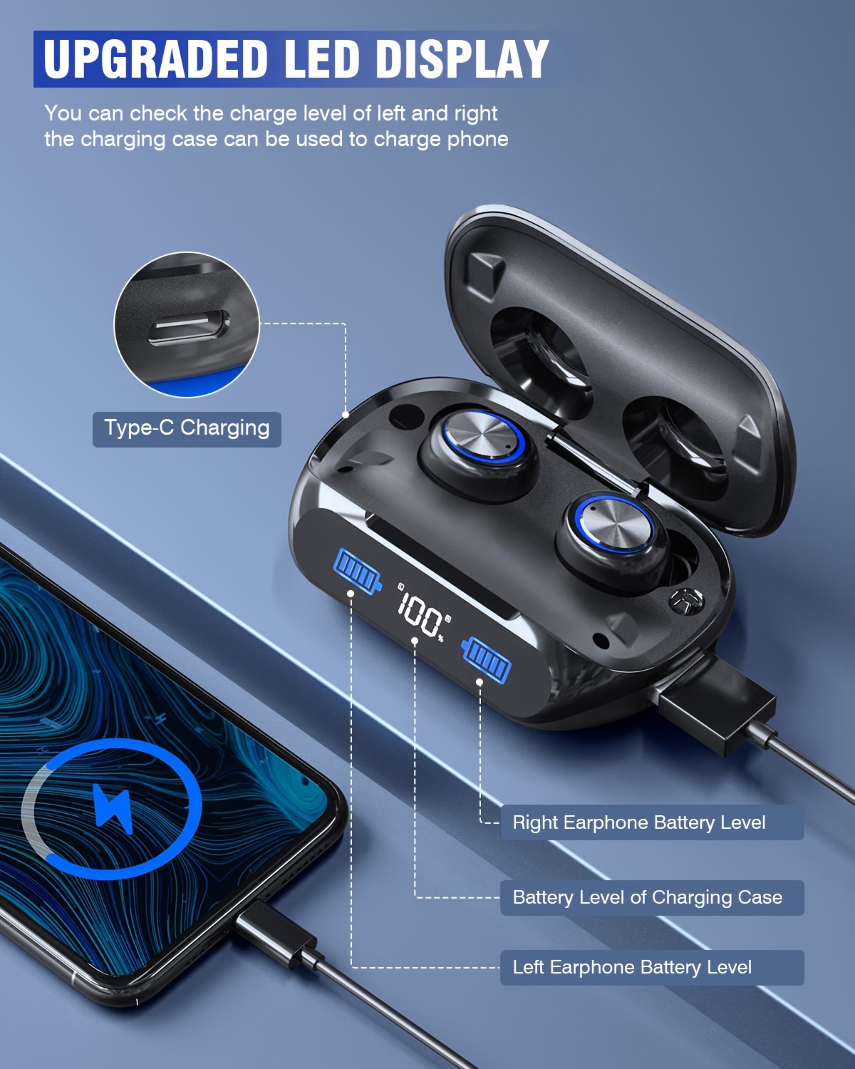 200-Hour Playtime Wireless Earbuds with 1400mAh Charging Case – HD Calls, Deep Bass, ENC Noise Cancellation, IPX7 Waterproof, Touch Control for Running & Workouts, Earbuds Wireless