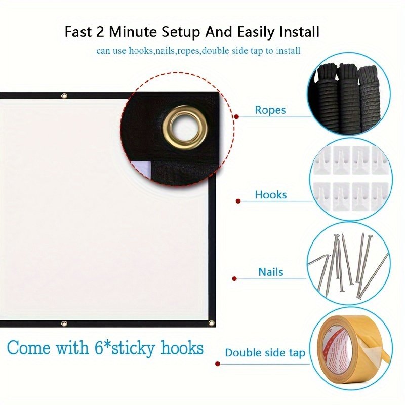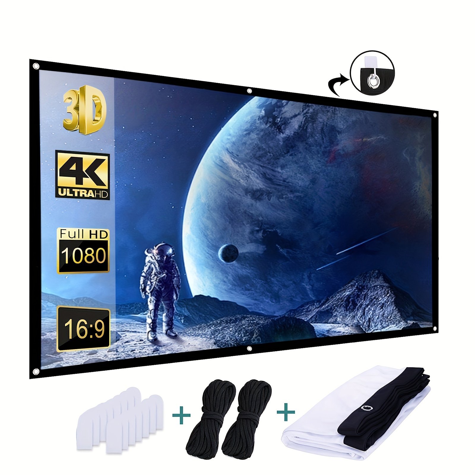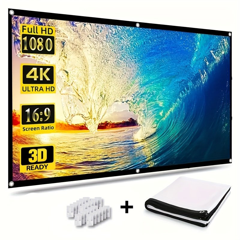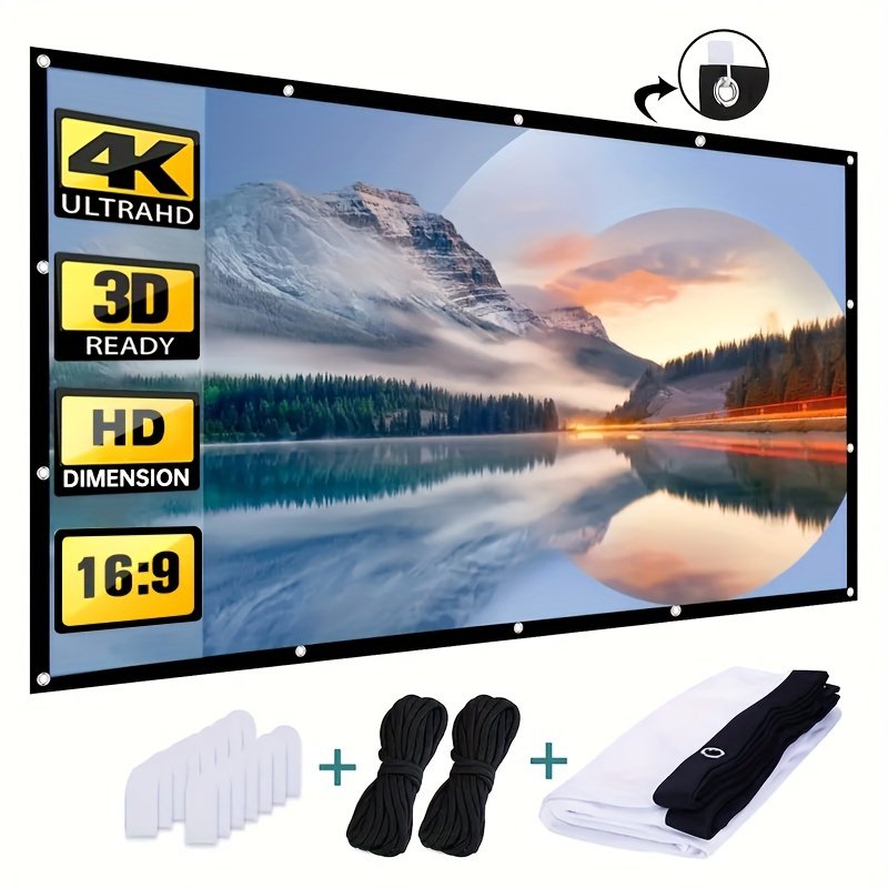 254.0 cm Projection Screen – Ultra HD, 3D Ready, Polyester Fiber, 16:9 Aspect Ratio – Indoor/Outdoor Portable Movie Screen with Mounting Hardware, No Battery Required