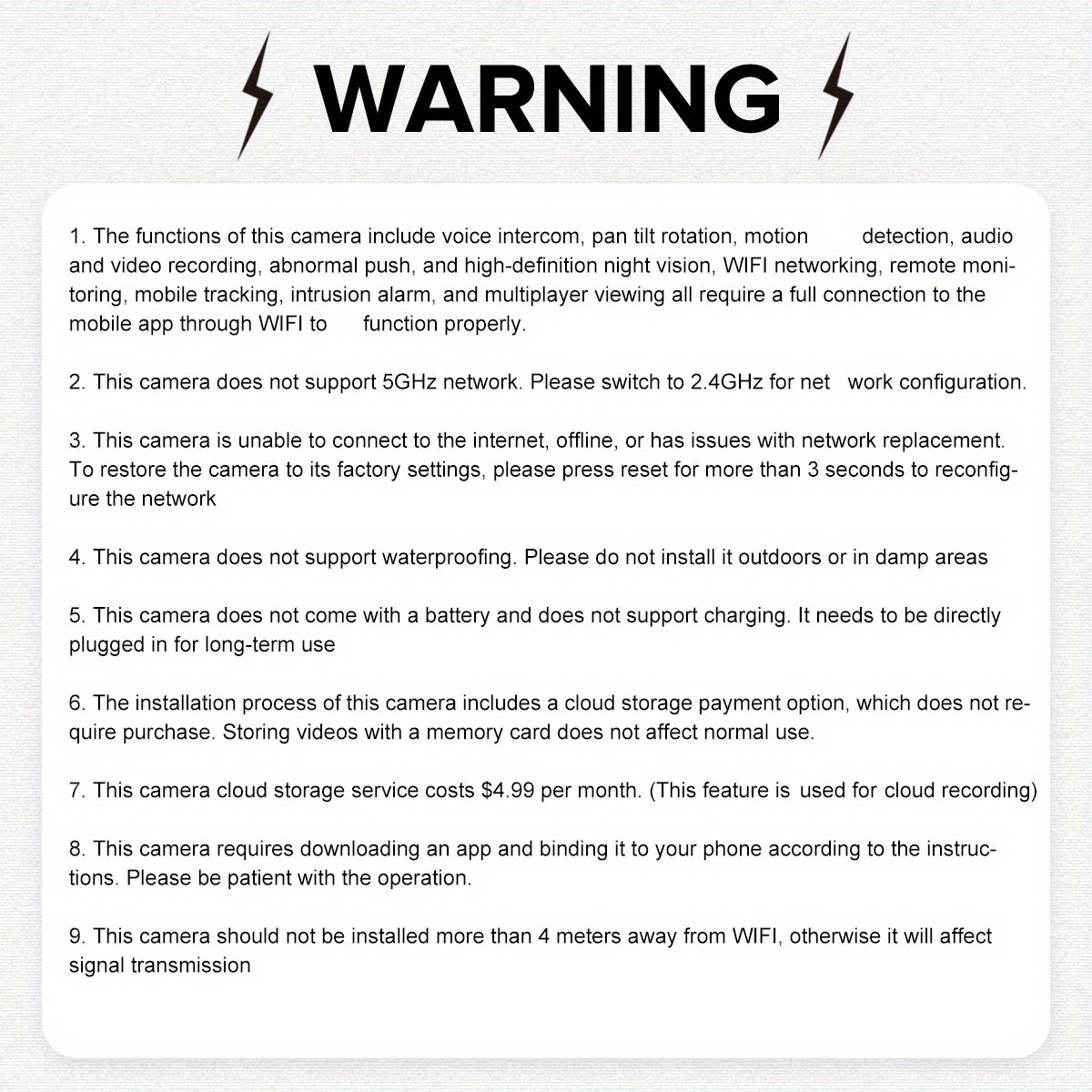 Water Resistance Level: Non – Waterproof