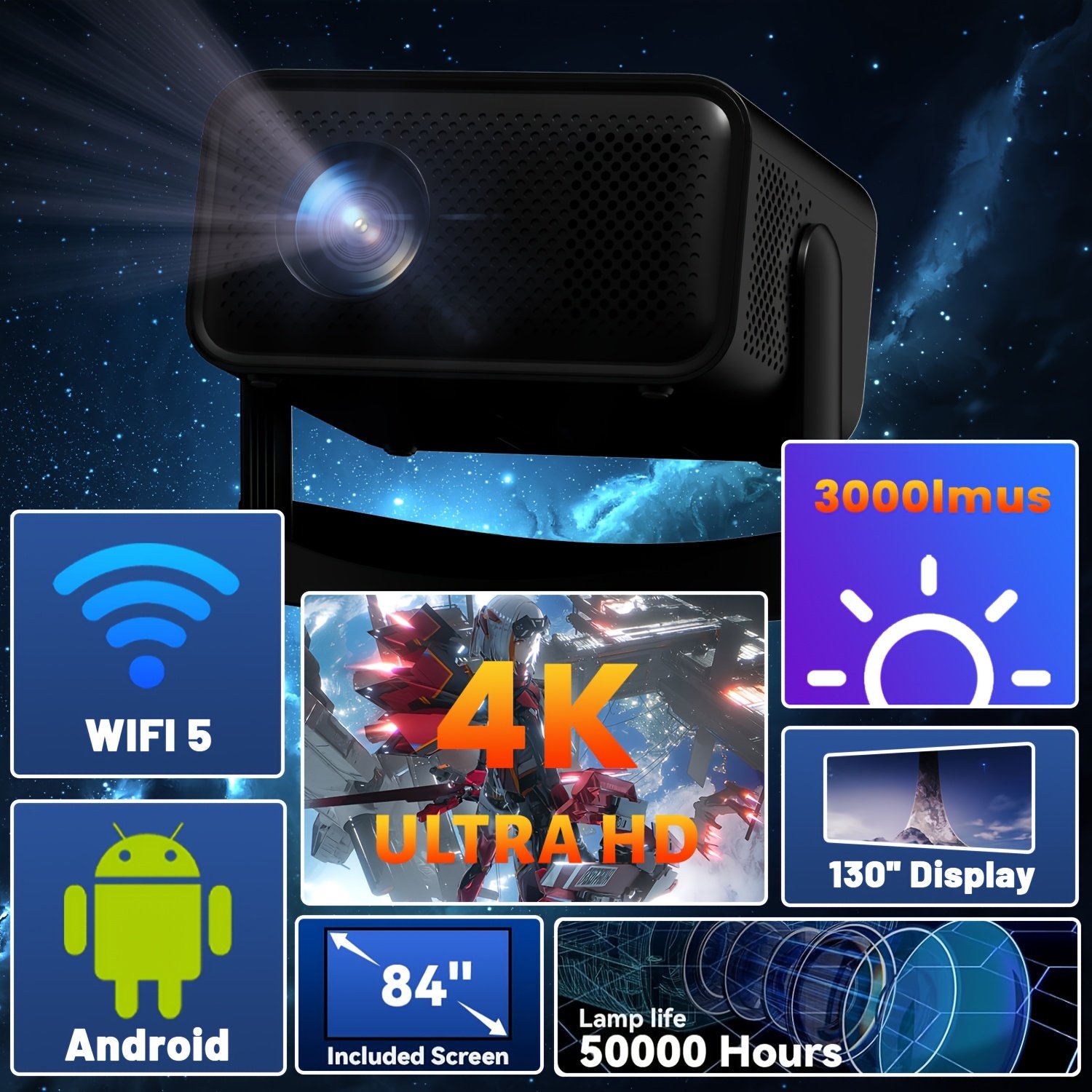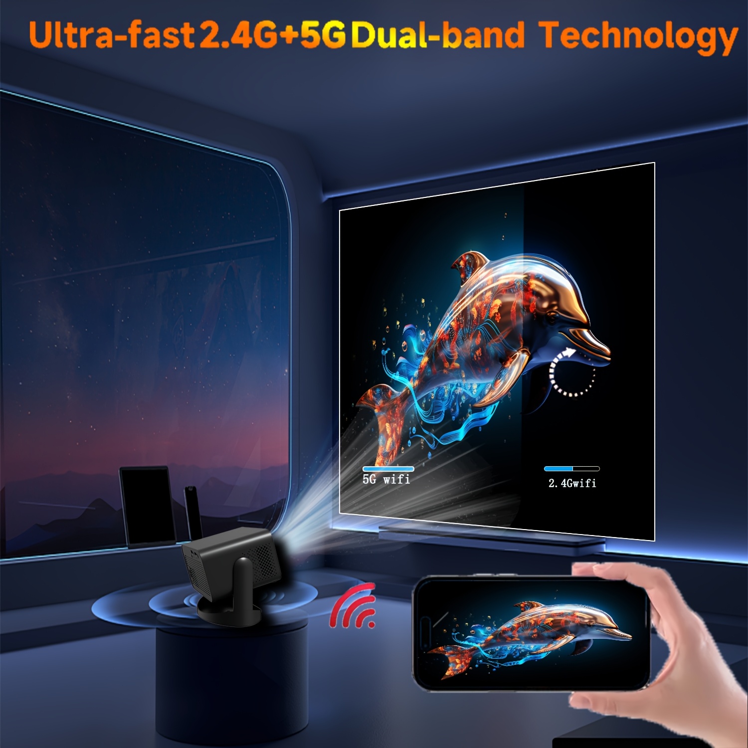Enjoy uninterrupted entertainment with our smart projector featuring the Android 11 OS, eliminating the need for extra devices. Keep up with technological advancements and software upgrades for ongoing compatibility. This compact projector is equipped with dual-band 2.4/5G WiFi 5, which minimizes lag and boosts responsiveness, making it perfect for video calls and instant applications for a more fluid and engaging experience.