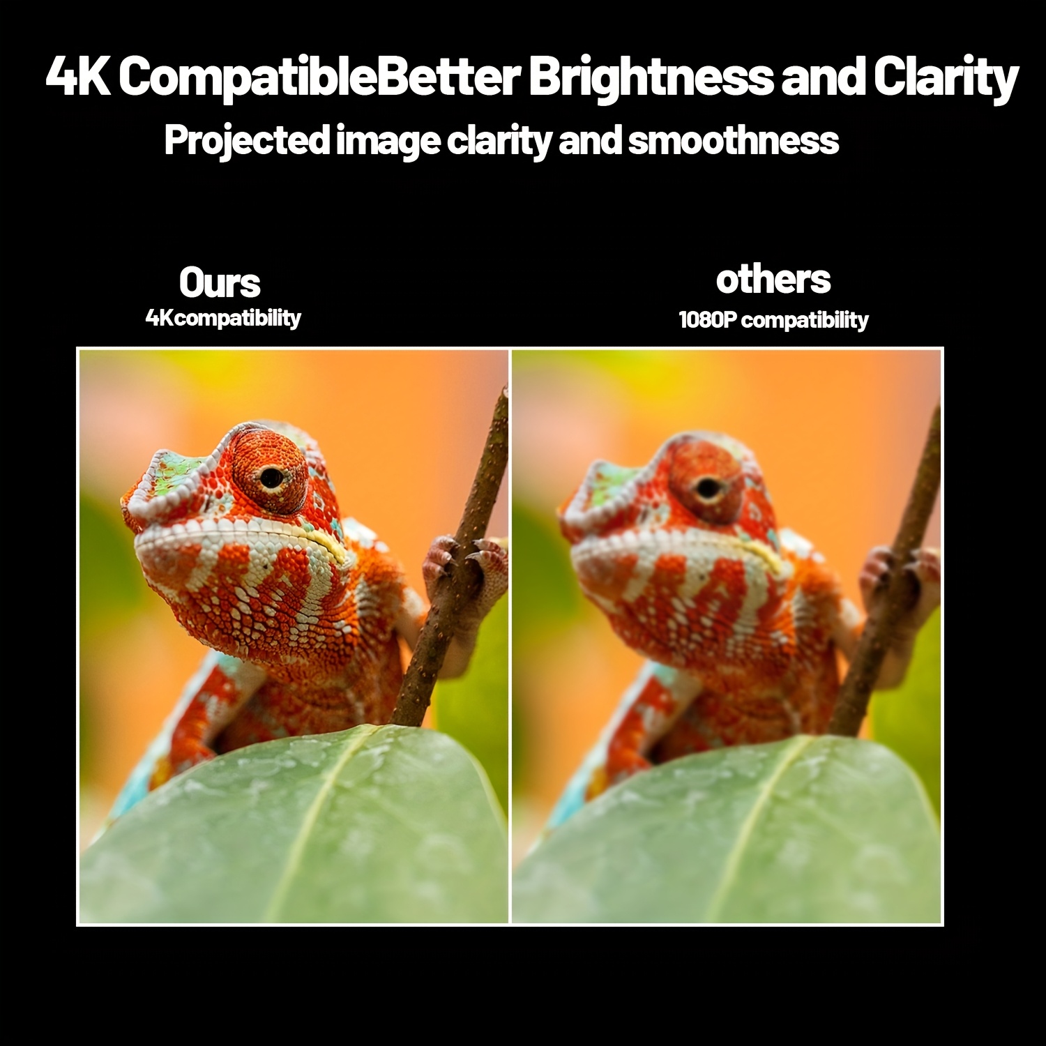 ANSI lumens create bright and clear visuals. The use of German chips along with Japanese digital imaging advancements has significantly enhanced brightness, clarity, and color accuracy. The projection features minimal edge blurring and no dark spots. Your eyes benefit from 6-layer high-refractive lenses that reduce diffuse reflections. Ideal for showcasing photographs, enjoying films, and enhancing home decor.