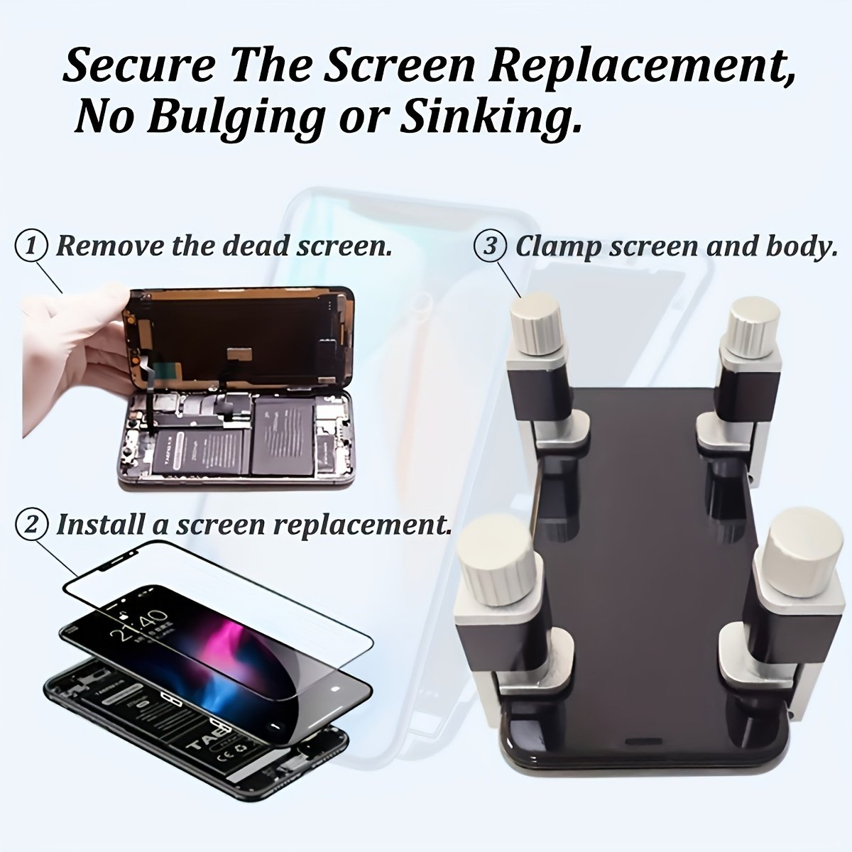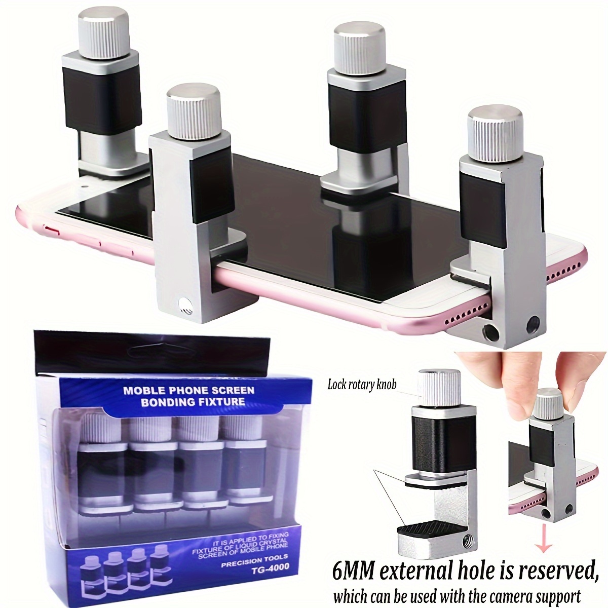 4pcs Mobile Phone Repair Clamps, Adjustable Mobile Phone Screen Refurbishment Tools, Screen Fastening Clip Fixing Clamp Tool, Compatible with Ipad, Laptop, Tablet, LCD Screen