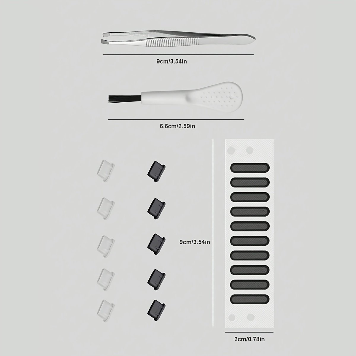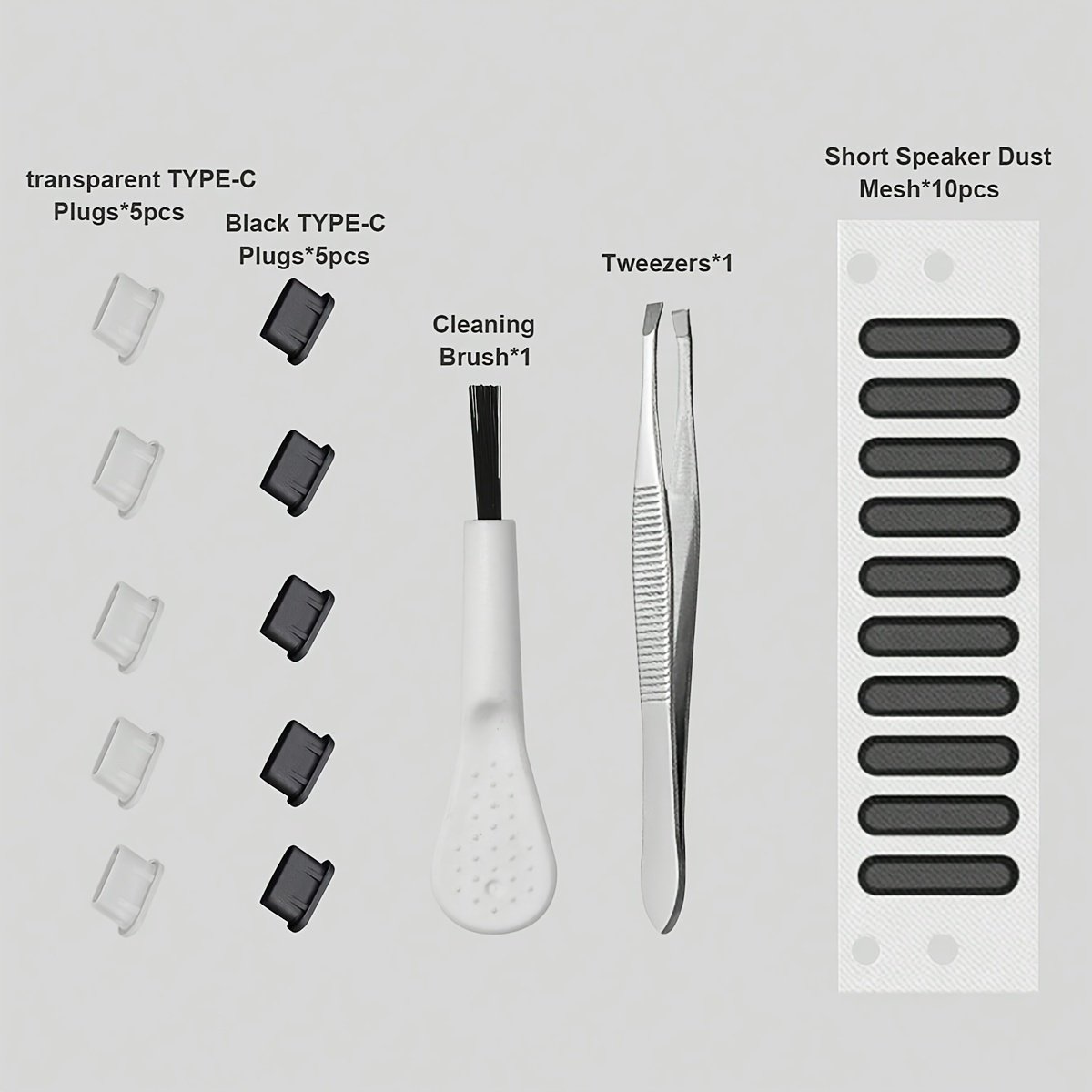 Dust filter*10 Tweezers*1 Small brush*1 Type-c dust plug*10
