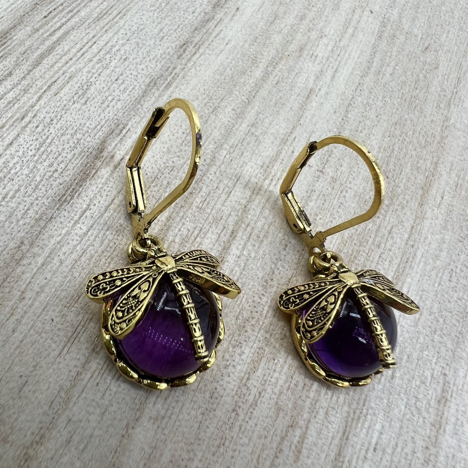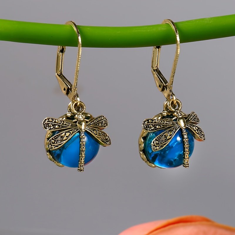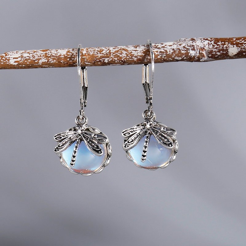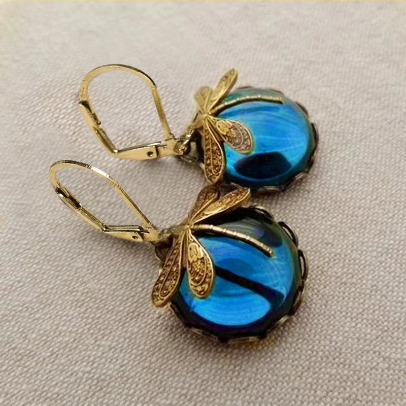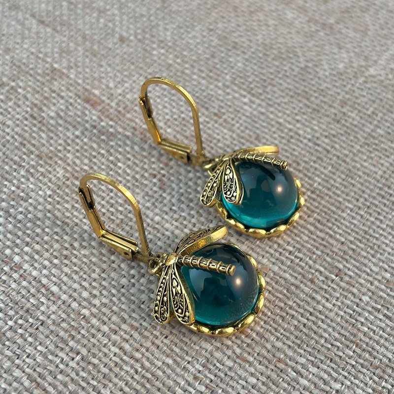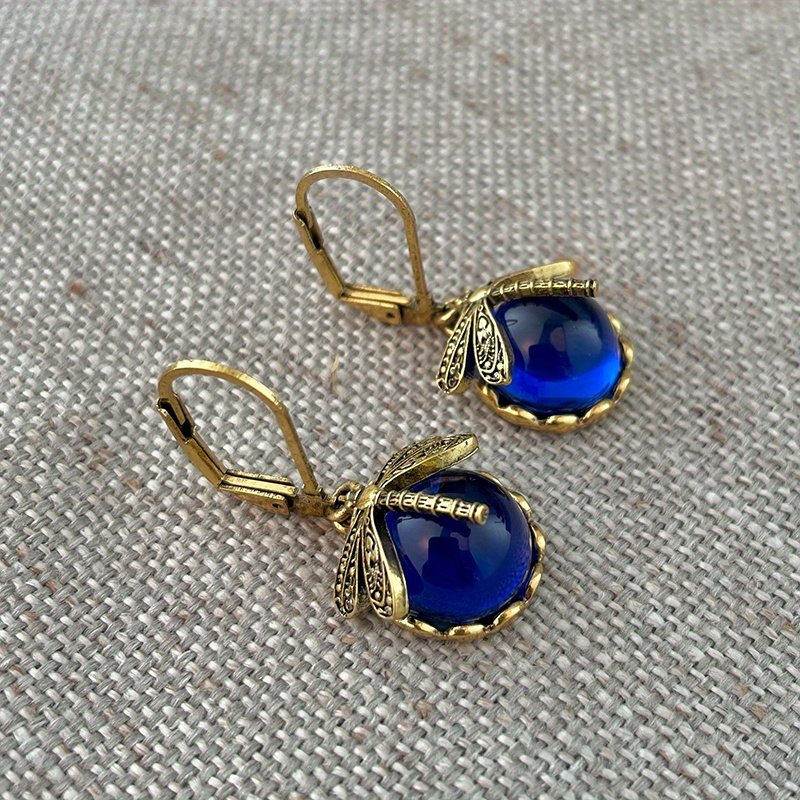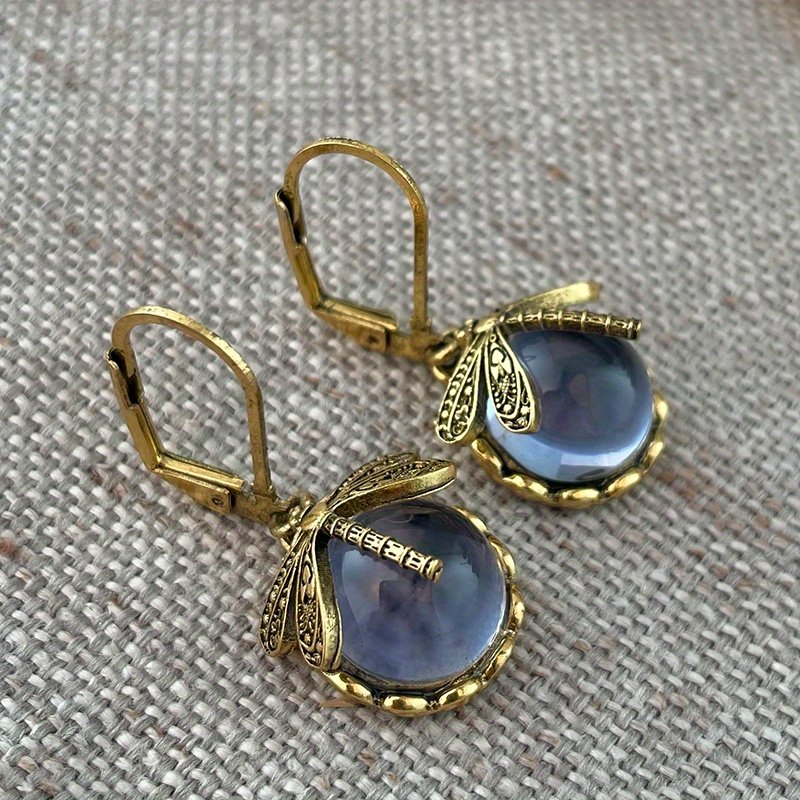 · Unique Design: Vintage metal dragonfly earrings with inky blue moonstone and brass glass cabochon are a one-of-a-kind addition to your jewelry collection.
