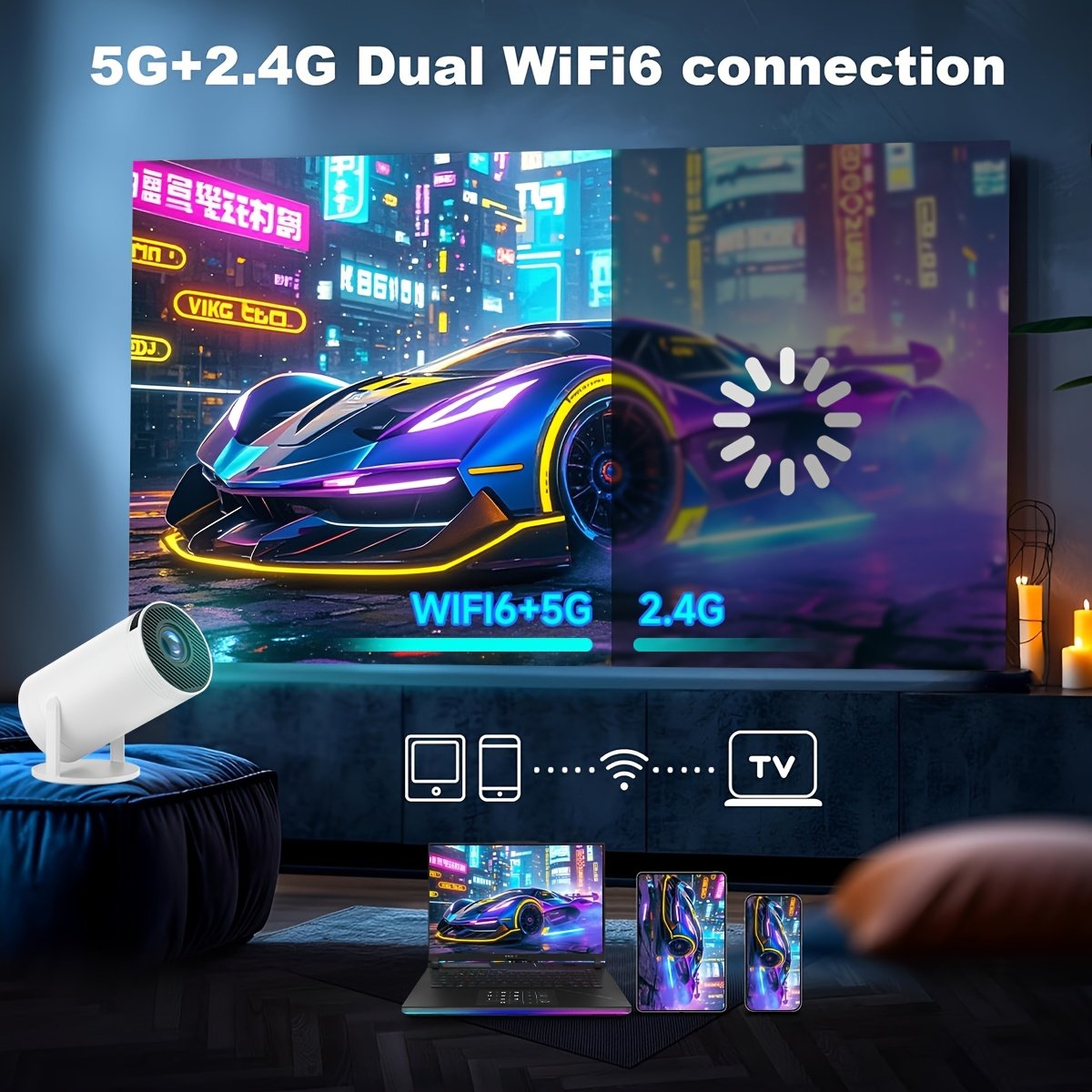 [Dual-Band WiFi & Wireless 5.2 Connectivity]Equipped with both 2.4G and 5G WiFi, our projector ensures a stable and fast internet connection for seamless streaming. The built-in Wireless 5.2 allows you to connect to your favorite speakers or headphones, enhancing your audio experience and offering flexible sound options