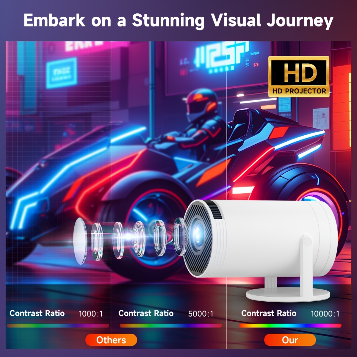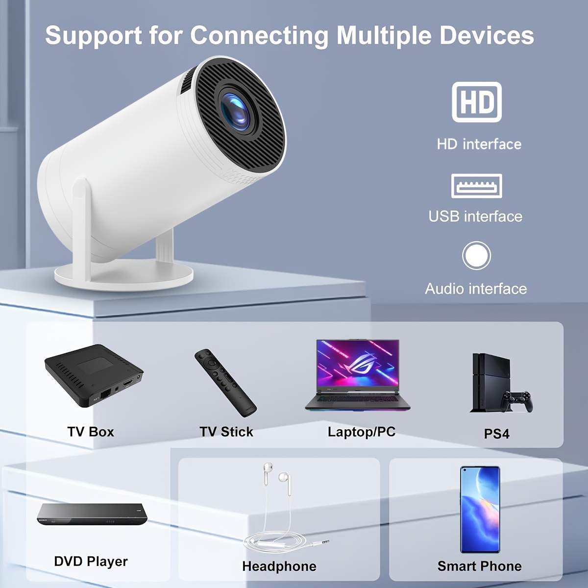 [Lower noise & Multi-device Connection ]With a noise level of <25dB, our premium heat dissipation system ensures a serene movie-watching condition, Immerse yourself fully and enjoy stunning visuals accompanied. This Smart Movie Projector with HD interface, USB and audio porindividuals, it's compatible with laptops, TV stis, USB disks, and more.