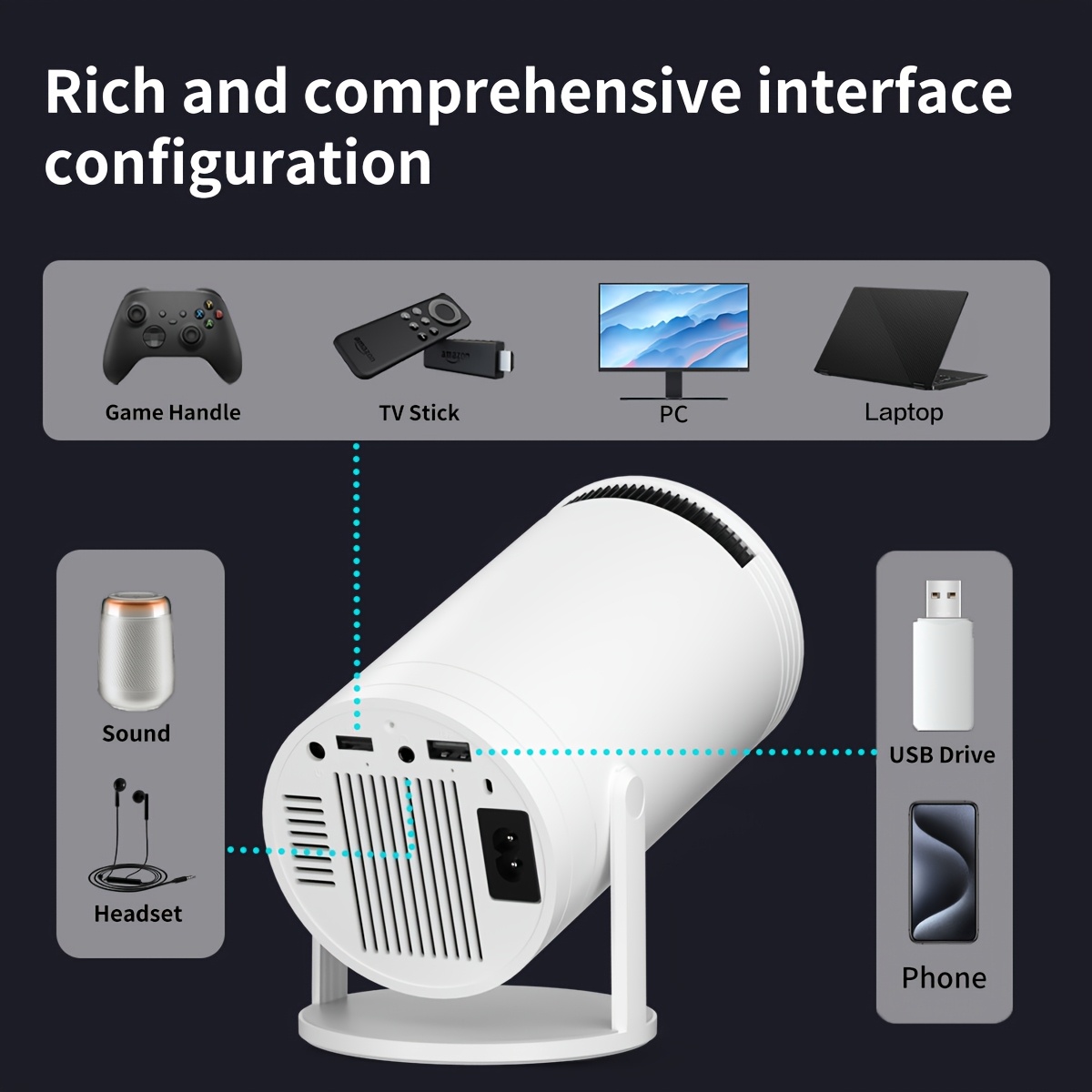 Compact SCUARI Mini Projector with Type-C Plug, 1080P Video Decoding, LED Projection, Auto Focus & Remote Control, 180° Rotatable, Low Noise, for Home/Office Use, Compatible with Phones/HDTVs/Laptops