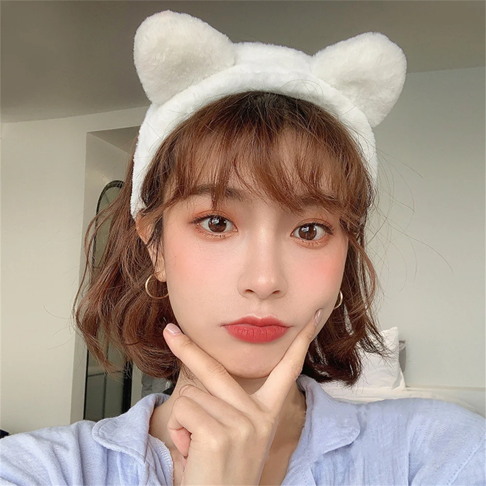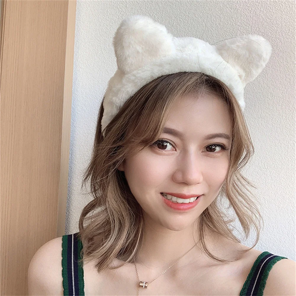 Cute Hairbands Cat Ears Coral Fleece Soft Headband SPA Bath Shower Make Up Wash Face Headband Headdress Girls Hair Accessories