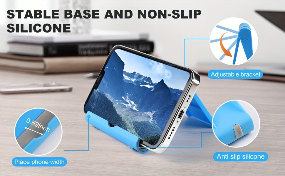 This phone holder is made of high-quality ABS material to ensure its durability. Silicone pads on the base and stand prevent the phone and stand from slipping and scratching.