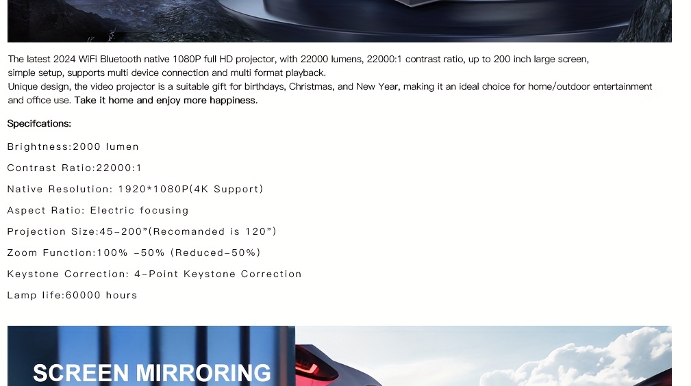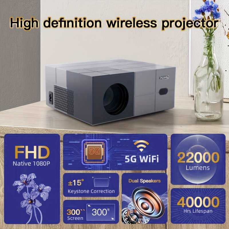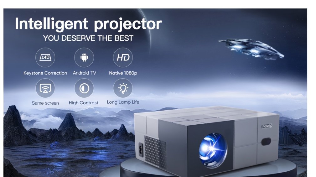 PGIVDA 4K Android Smart Projector, Apps Installable, Full HD 1080P 500 ANSI Lumens, Motorized Focus, One-Click Focus, Same Screen, Wireless, Compatible with HDTV, PS5, Laptop, Desktop