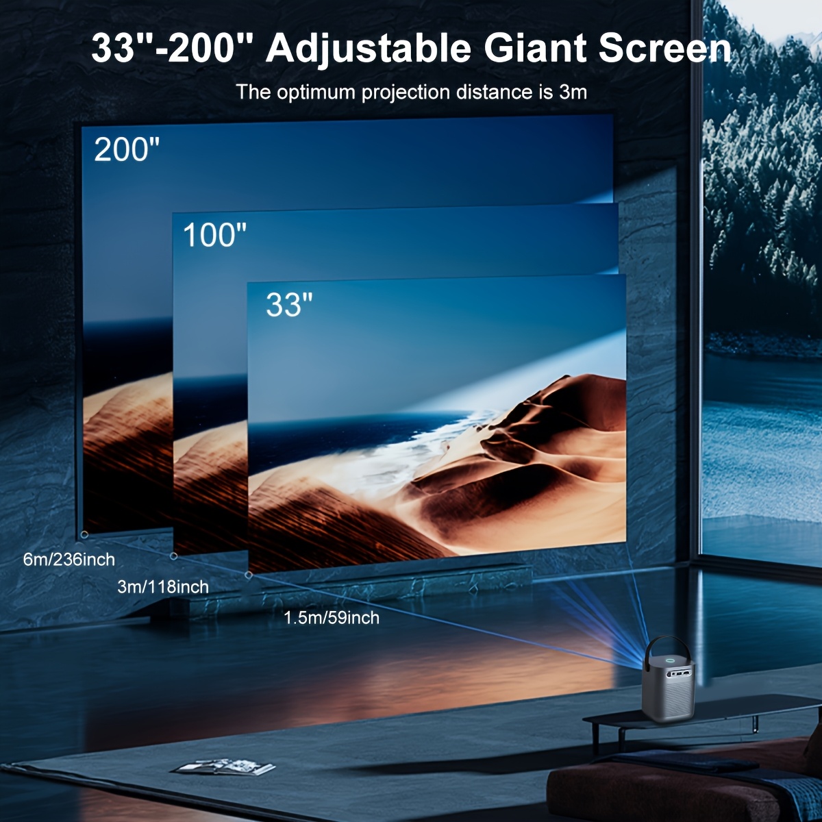 PGIVDA Wireless Projector for Mobile Phone, FHD 1080P Supported Portable Projector Electronic Focus, Max Projection Size 5.59meter