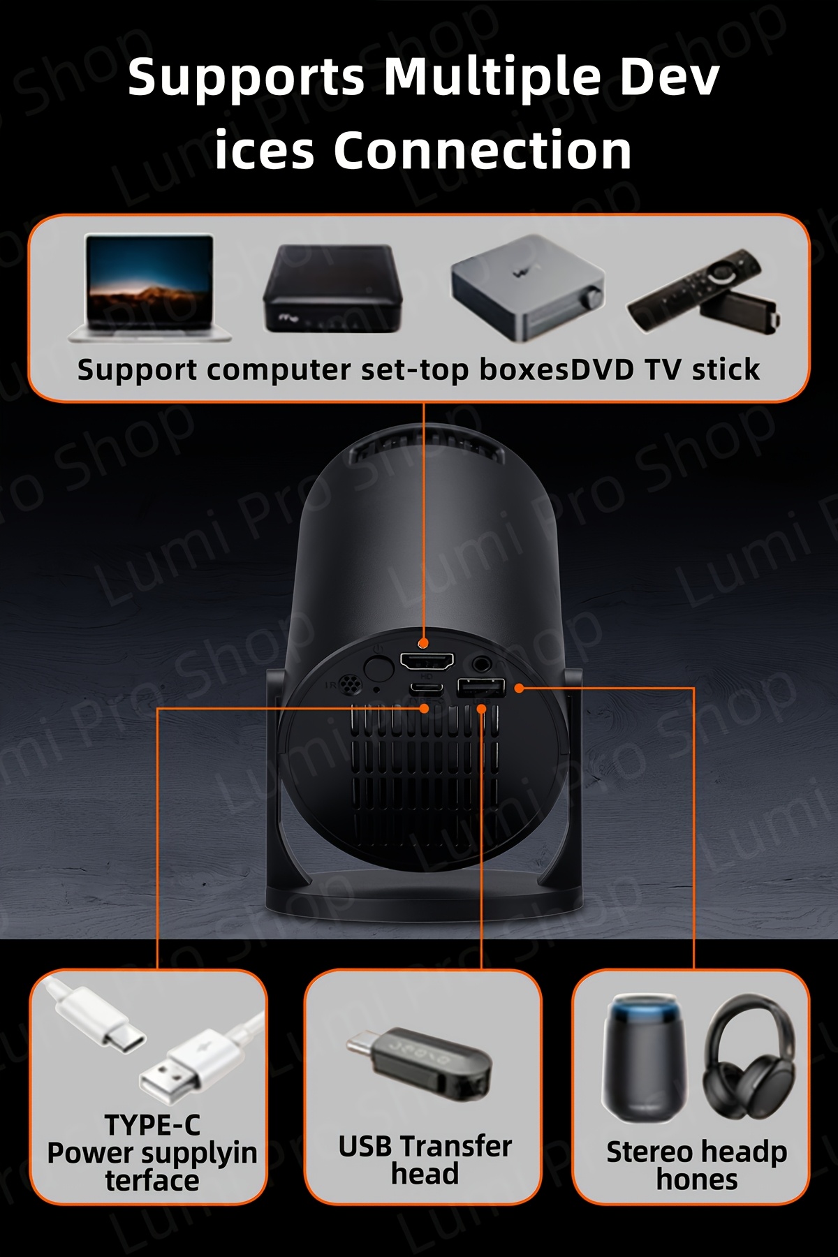 Portable Projector 1080P, Smart Projector with Android TV, 180° Rotatable, WiFi Connectivity, WUXGA Native Resolution 1920×1200, 3D Ready, LCD Display Technology, 500-999 Lumens, 4:3 Aspect Ratio, with USB Power, Button Control for Home Theater, 3.3meter