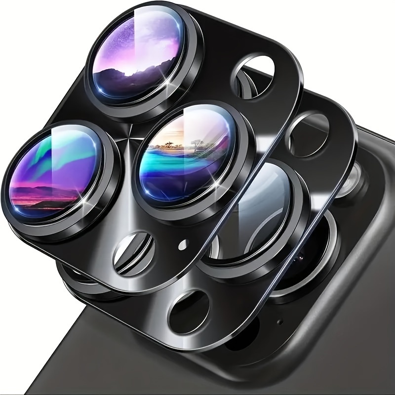 Protective Camera Lens Cover Made Of Golden Metal Ring Tempered Glass For IPhone 16 Pro Max/15 Pro/14 Pro Max/Plus/13 Pro/14/13/Mini/12/11/16/15Promax, Ultra-clear, Scratch-resistant, Easy To Install, Full Coverage Lens Protector