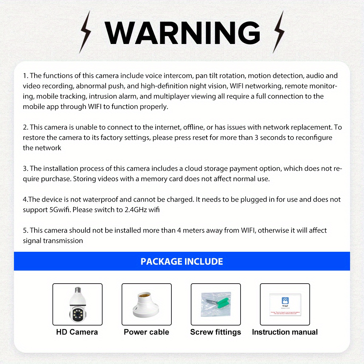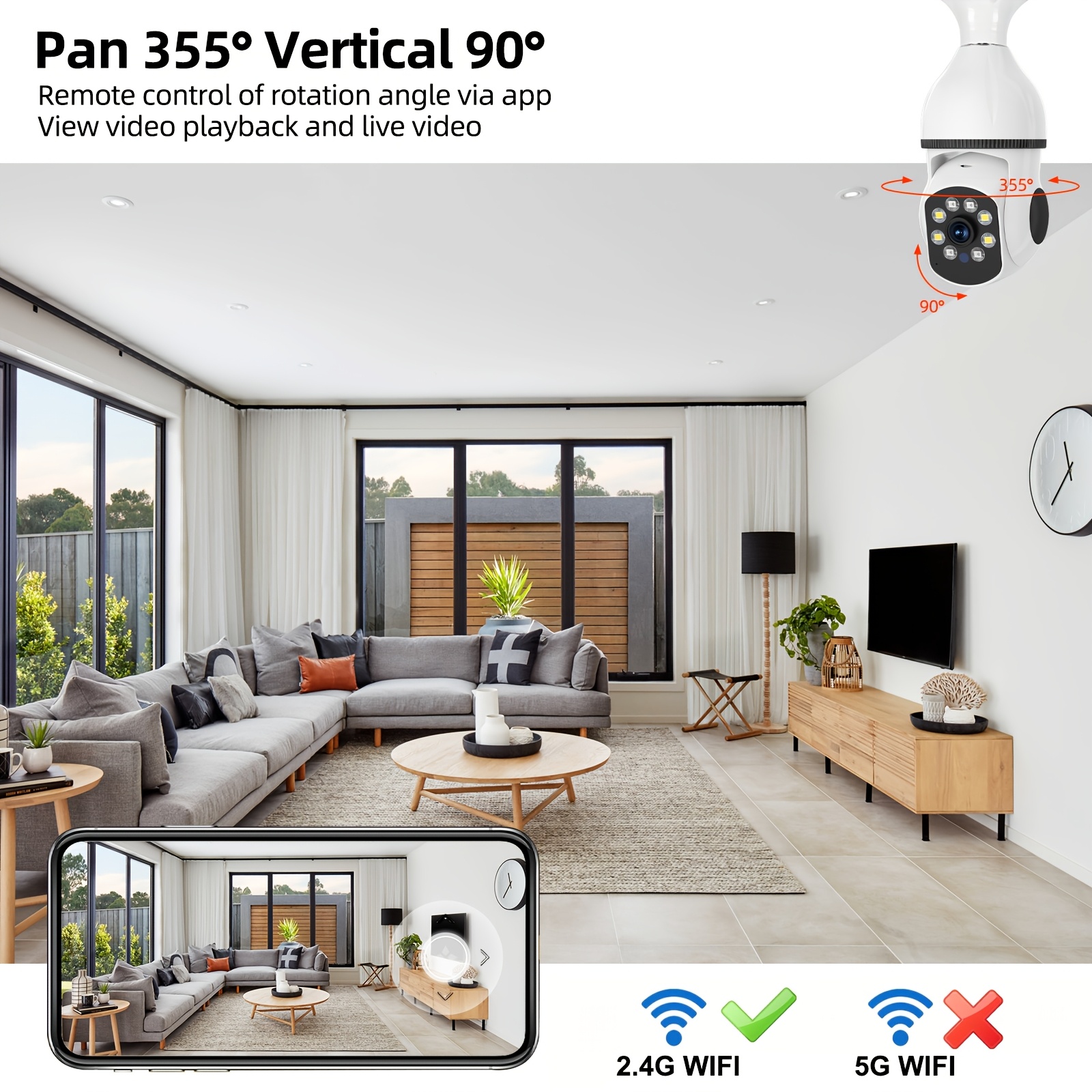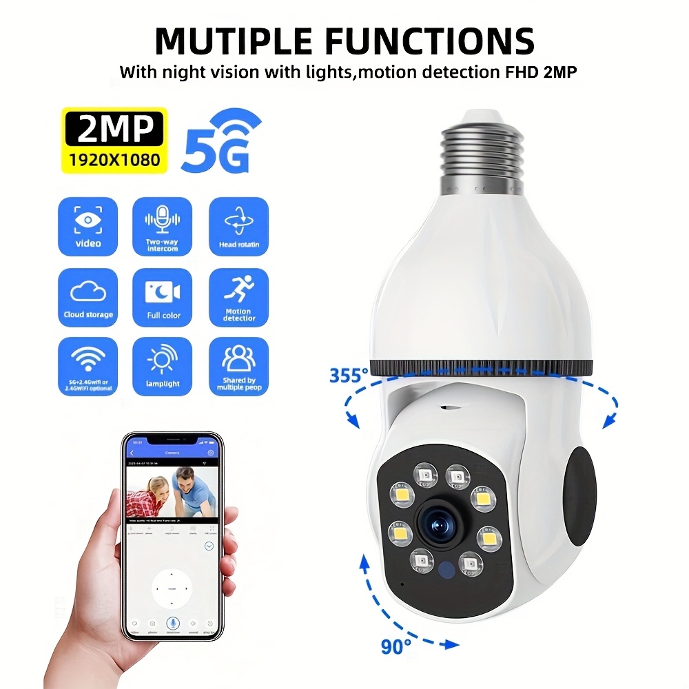 WJG 5G WiFi Smart Light Bulb Camera – E27 Fit, 360° Rotation, Auto-Tracking, Panoramic View, Wireless PTZ, Infrared Night Vision, Motion Detection, Two-Way Audio, Easy Setup