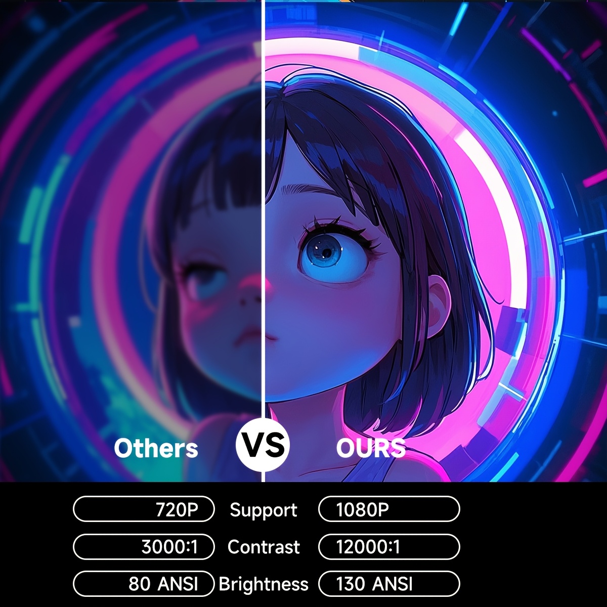 XYA-UHD Portable Mini Projector with WiFi & Wireless – Android 12, 270° Rotation, HD 1080P, Cute Bunny Design, Smartphone/Tablet Compatible, Ideal for Home Theater & Presentations