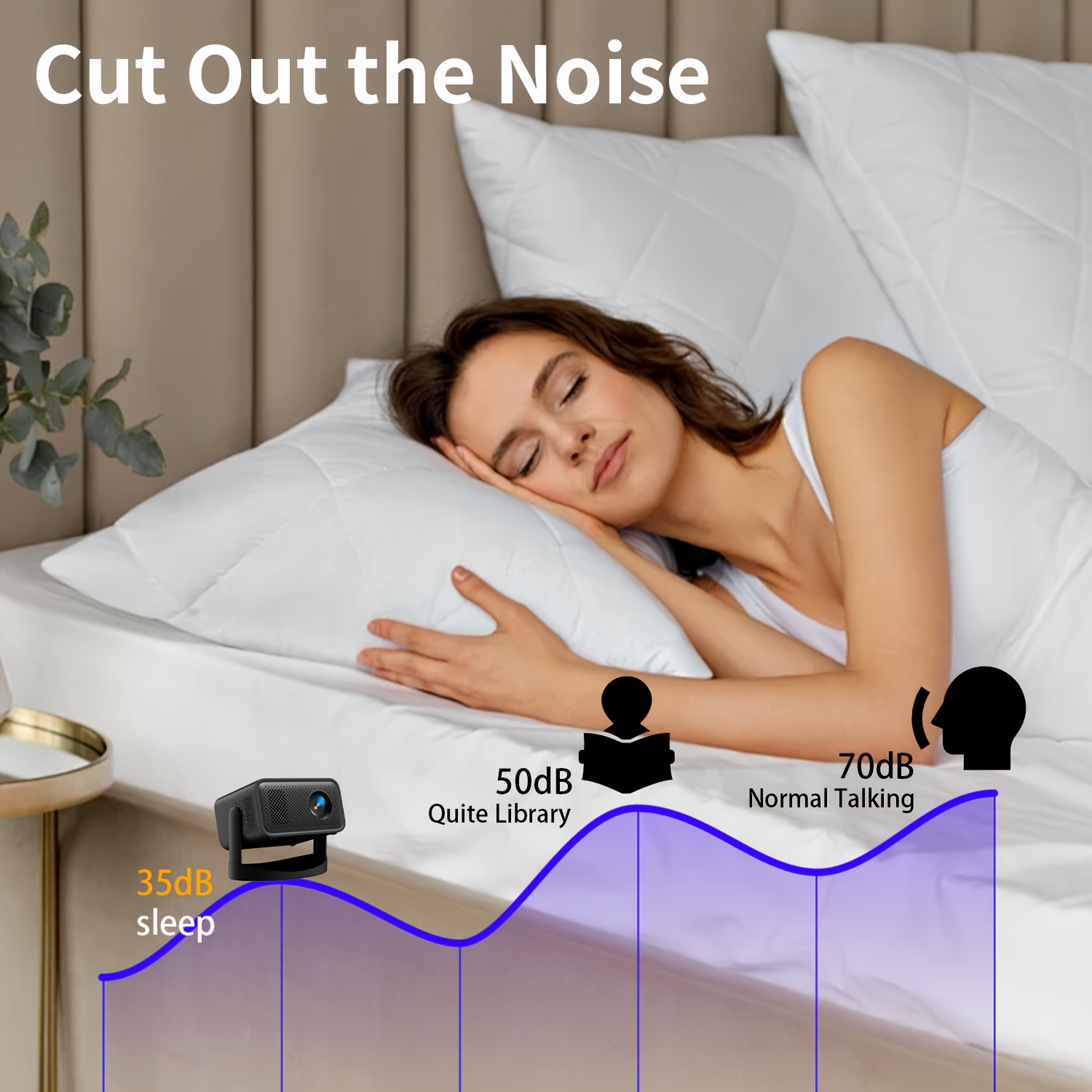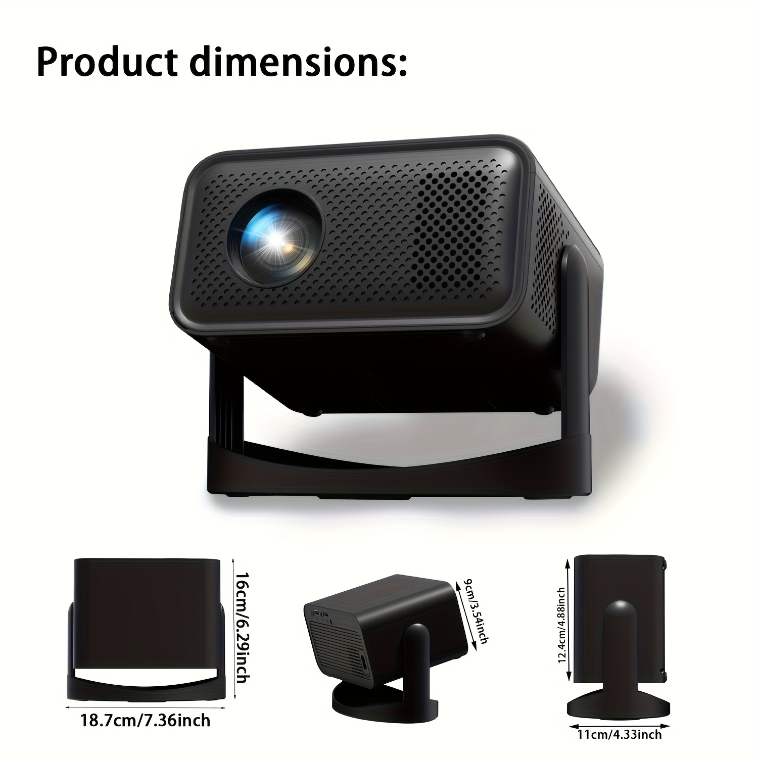 ZRZTM Projector – Ultra HD 4K decoding support 1080P, built-in Android, lightweight and portable, 360° adjustable viewing view, wireless wifi autofocus/keystone correction HDTV home theater experience